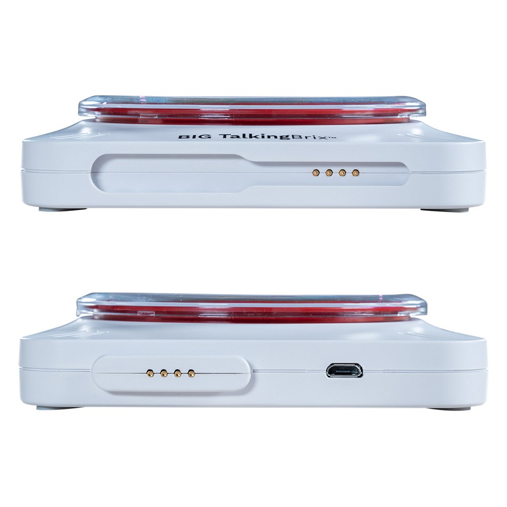 BIG Talking Brix har ett inbyggt uppladdningsbart batteri med lång batteritid. Du laddar batteriet via en mini-USB-kabel (ingår). Om du sitter vid en dator kan du ladda via datorns USB-uttag. Du kan självklart också ladda i ett vanligt eluttag. Du kan ladda tre hopkopplade BIG TalkingBrix samtidigt.