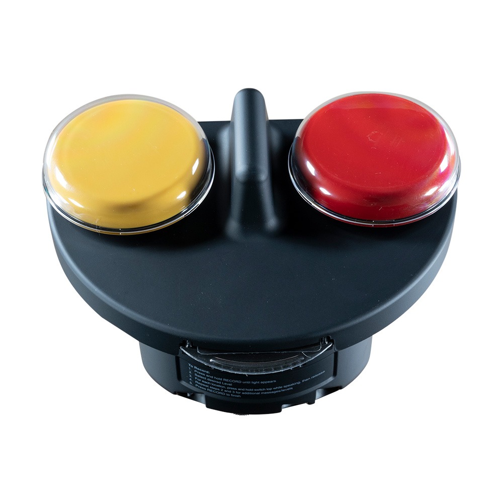 Varje aktiveringsyta är 64 mm i diameter, en aktiveringsyta är röd och den andra gul. Du får med två transparenta lock som du kan använda för att anpassa varje lock med bildstöd utan att behöver tejpa eller klistra fast. Det gör dels att du lättare kan byta mellan olika symbolkort och dels att du skyddar enheten.